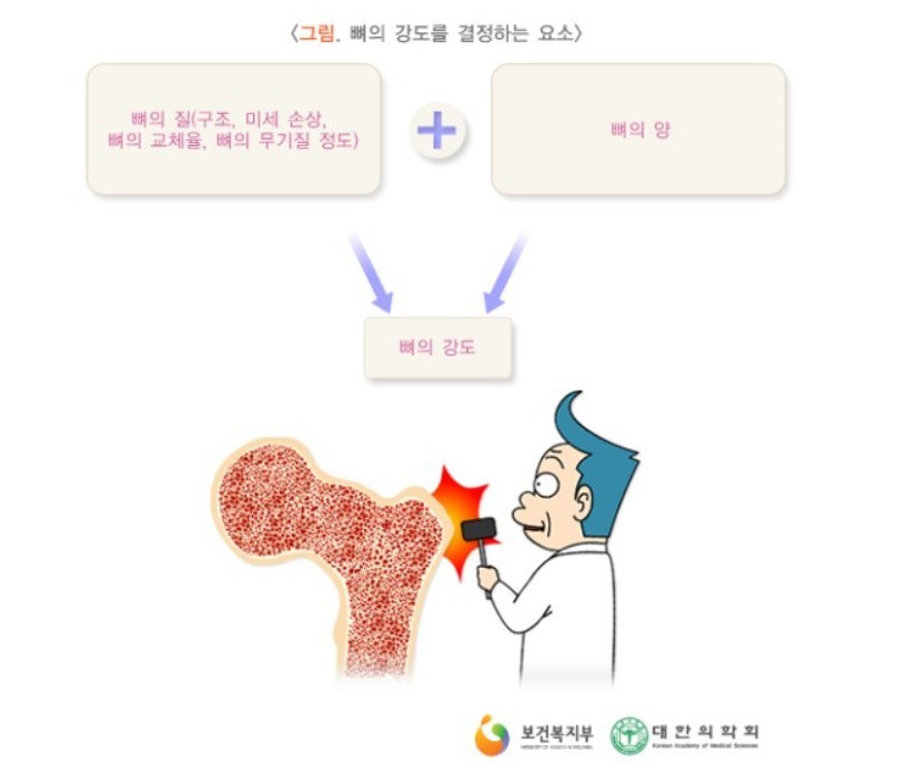 1년마다 10%의 뼈가 교체되고 10년이 지나면 우리 몸의 뼈는 모두 새로운 뼈로 교체됩니다. 20대에서 30대까지 골밀도가 가장 높고 그 이후로는 조금씩 감소하다가 여성의 경우 폐경 첫 5년간 급속도로 골밀도가 약해집니다.
