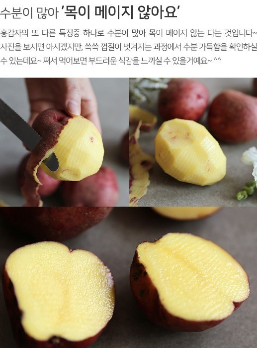 - 빨간감자는 껍질이 얇아서 껍질을 벗기지 않고 그대로 드실 수 있습니다