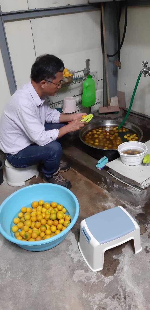 양초장 일과 후, 3시간이 넘게 수확한 탱자를 세척하였습니다. ‘탱자청’을 담그려면, 세척한 탱자를 자르고, 씨앗 제거하고~, 세척하지 않은 탱자도 세척한 양의 2배가 넘게 남아있습니다. 할 일이 많습니다. ‘탱자청(또는 탱자주)’도 해마다 만들어, 와인 창고에 ‘매실주”와 함께 넣어 둘 예정입니다.